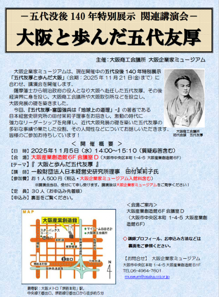 大阪企業家ミュージアム講演会「大阪と歩んだ五代友厚」