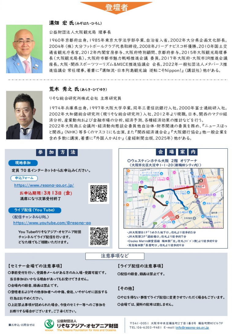 第58回りそなアジア・オセアニア財団セミナー ポスト万博、その先へ~関西経済を再構築する『次なる一手』~