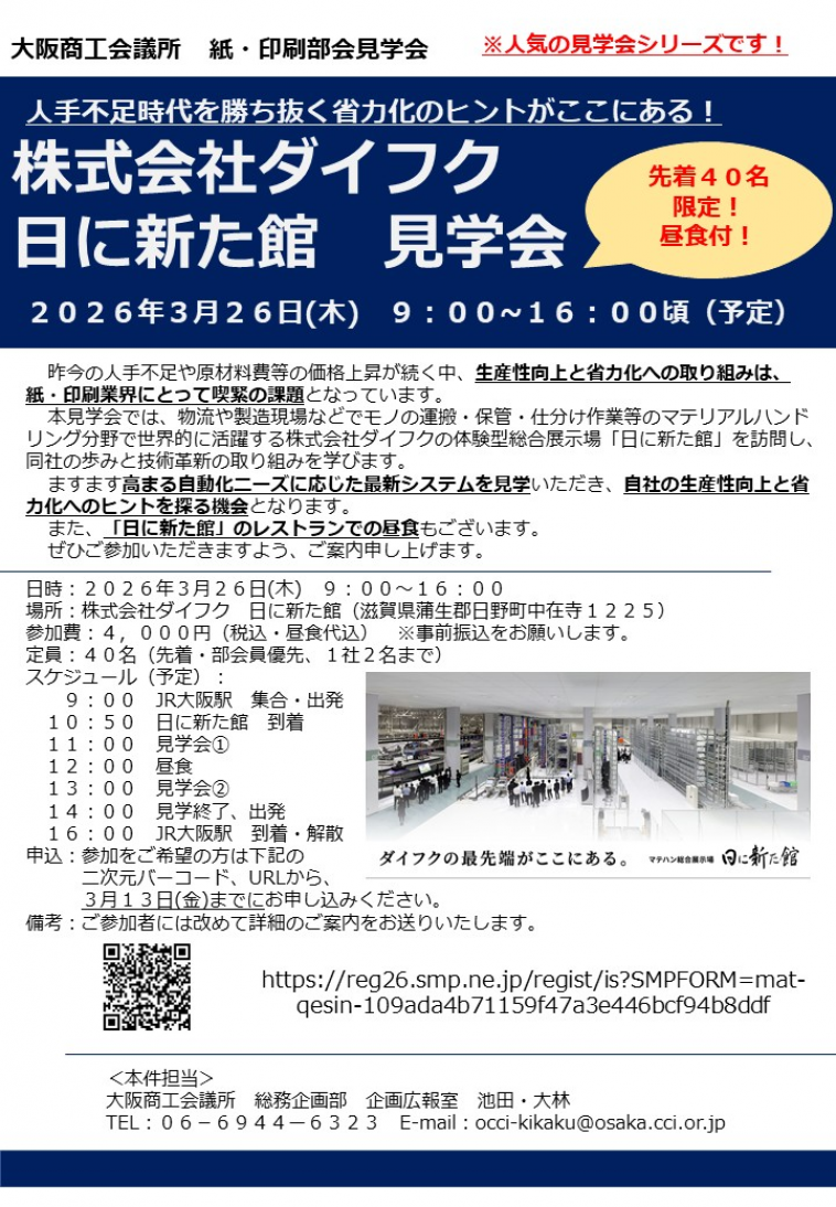 紙・印刷部会見学会 「株式会社ダイフク 日に新た館見学会」(先着40名限定・昼食付)