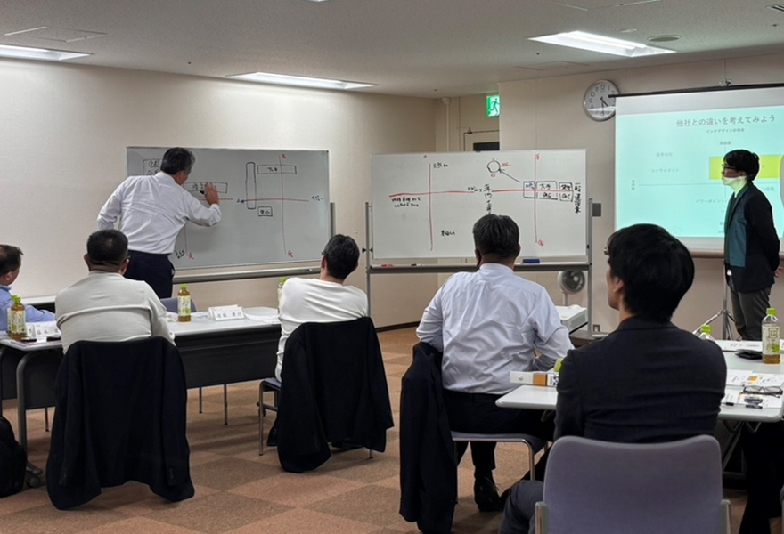 「ブランディング=かっこよくすることではない」ということから始まり、自社の強みを言語化し、他社との違いを表現するワークを行いました。