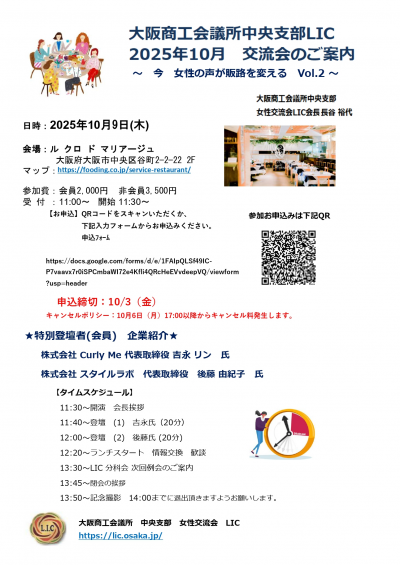 大阪商工会議所 中央支部 女性交流会 L.I.C(L.I(愛).C)